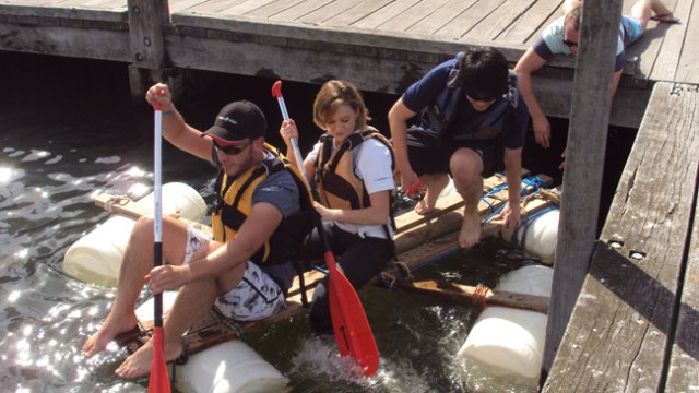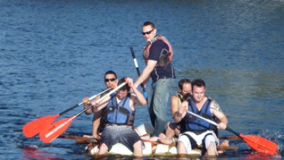 Teams compete to design, construct, and then paddle their craft across the river using only plastic barrels, wood, and rope. Sore sides from laughing are a strong possibility.